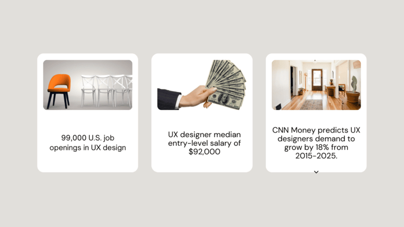 UX design is also an integral part of product development, and the demand for UX designers has been growing. According to LinkedIn the number of UX designers being hired has increased by five times between 2019 and 2020. Glassdoor ranks UX designer 24th in their list of top paying jobs in the US, with a median salary being around $97,000. There has been an increase in the UX designer salaries due to the high demand. Breaking into UI/UX design field is not so easy.