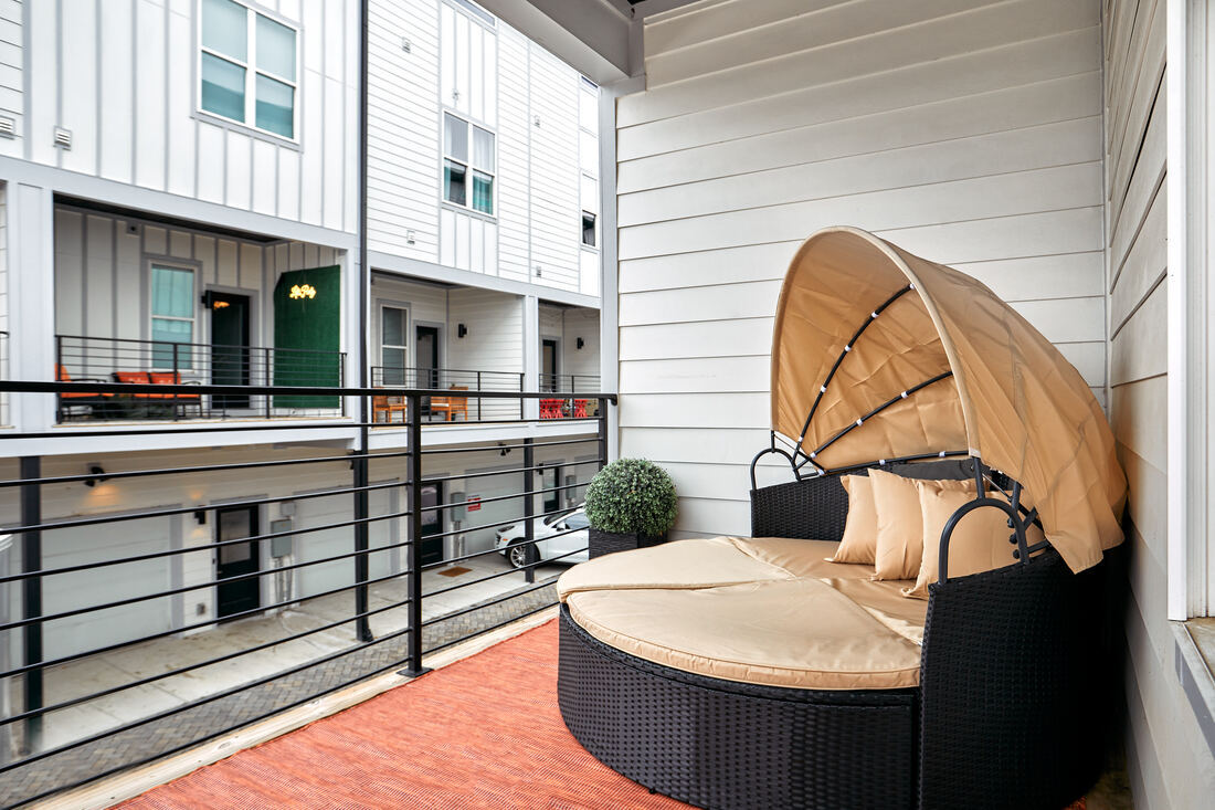 From the moment you step inside, you'll be captivated by The Austen's elegant charm. The open-concept design seamlessly integrates a gourmet kitchen, dining area, and living space, perfect for entertaining guests or unwinding with loved ones. The first floor hosts a cozy queen bedroom with an ensuite bathroom, while the living room offers a convenient queen sleeper sofa. The third floor features two additional bedrooms—one with two queen beds and another with a king bed, both with ensuite bathrooms. The fourth floor boasts another king bedroom, providing ample space for up to 10 guests. Relax on the serene balcony, sip your morning coffee, and soak in the beauty of the surrounding neighborhood. The private rooftop oasis offers breathtaking views of the city, providing the perfect spot to unwind after a day of exploring Nashville.
