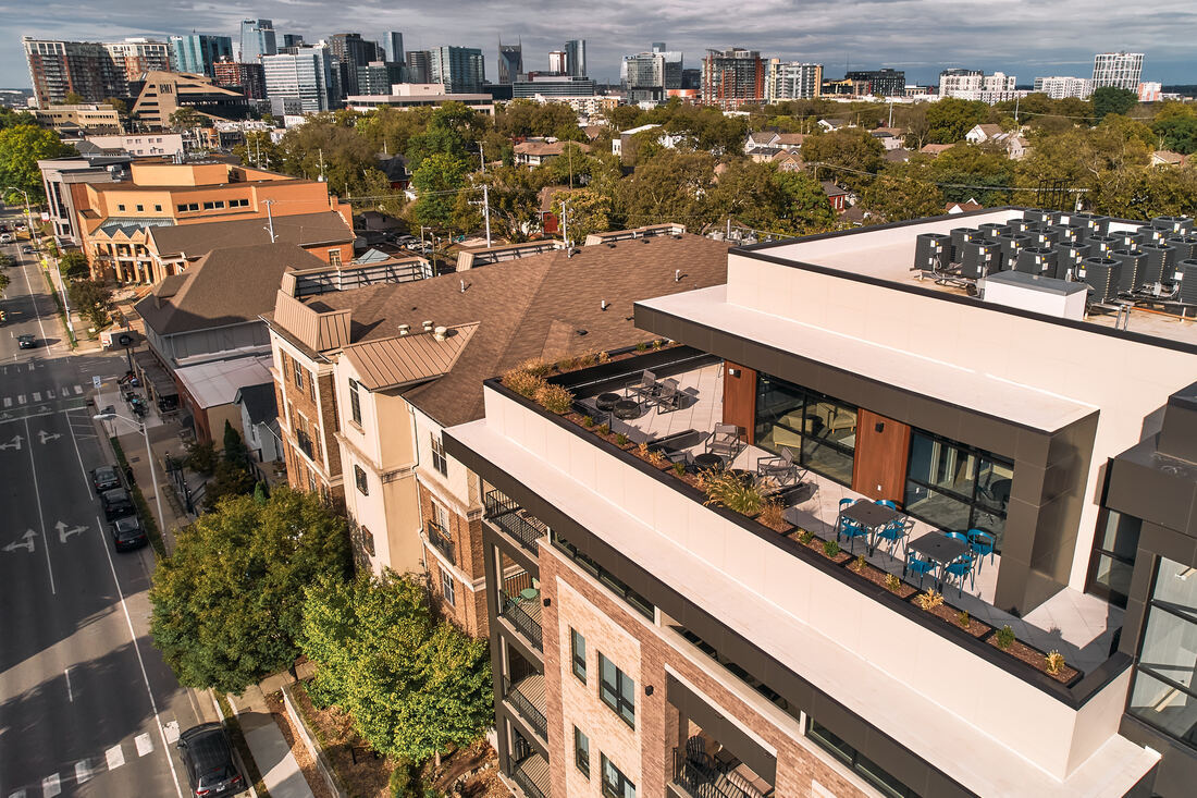 Your Nashville experience extends beyond the walls of your condo. Take the elevator up to the sprawling communal rooftop, where breathtaking city views await. Stay on top of your fitness routine in the state-of-the-art fitness center, or unwind in the indoor rooftop clubhouse, perfect for entertaining new friends. For those mixing business with pleasure, the business center provides a quiet space to catch up on work, while the pool table offers a fun break between tasks.