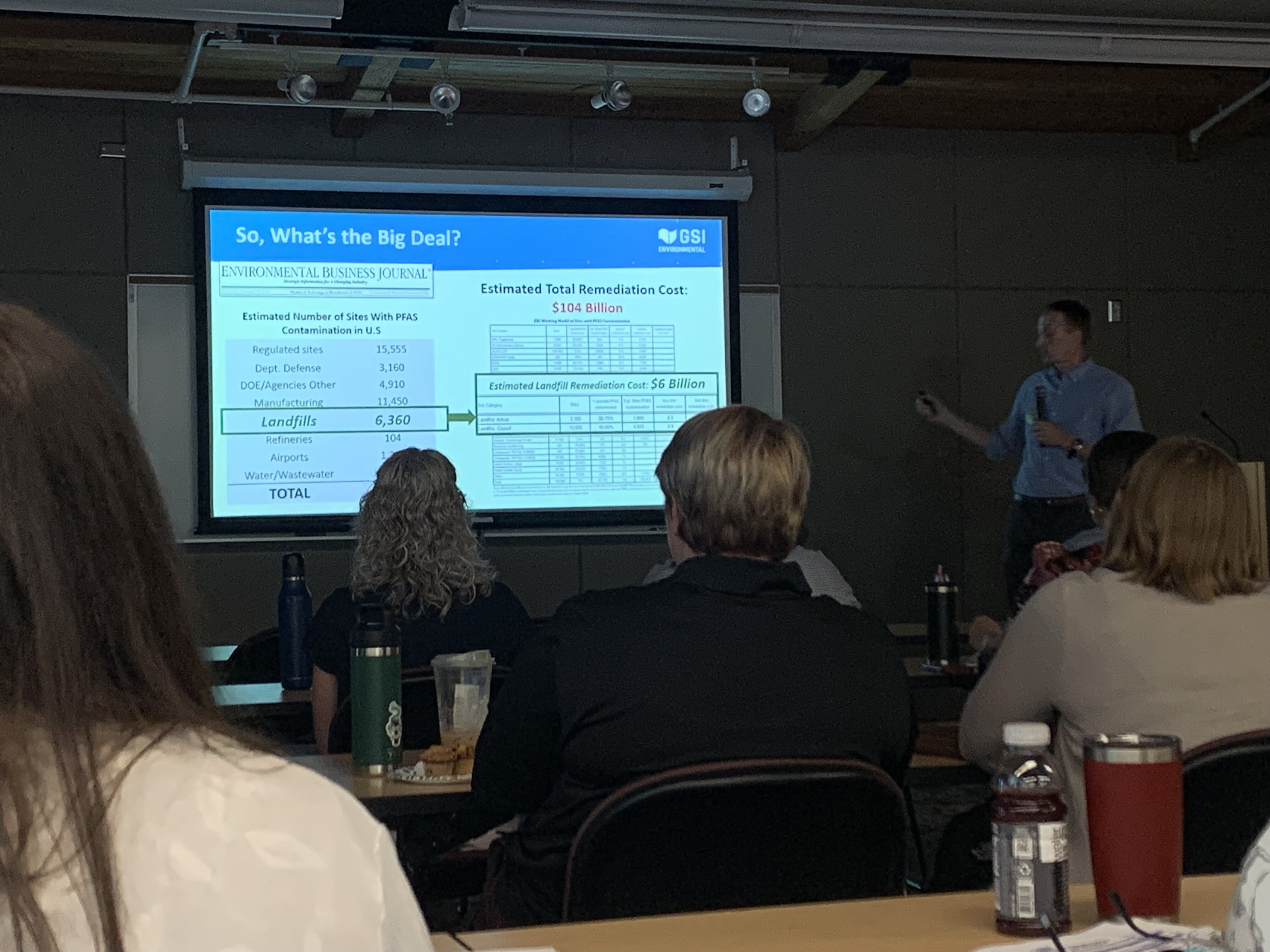 GSI Environmental kicked things off with a deep dive into defining PFAS and other associated compounds, completing a PFAS literature and research review as part of the talk. PFAS are definitely under scrutiny and more research is needed to fully understand them, but these compounds are persistent, bioaccumulative, prevalent in humans and the environment with the potential for toxicity. They can move through soil and groundwater, and have been found to be present in leachate and condensate from landfills; one major concern is that unlined landfills can impact shallow groundwater meaning that PFAS compounds can travel.