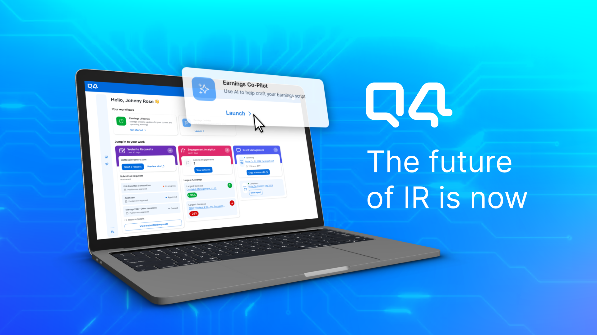 Investor Relations is a jack-of-all-trades job. IROs must manage websites, coordinate earnings calls, track shareholder activity, and ensure the highest quality disclosure, transparency, and regulatory compliance. That’s why we sat down with Ed Miller, Head of IR at Q4 and a seasoned industry professional, to discuss his experience using the Q4 platform. Joining the conversation is Sam Bagazzoli, Q4’s Head of Agency and Partnerships, who offers insights into how the platform empowers agencies to serve their clients better.
