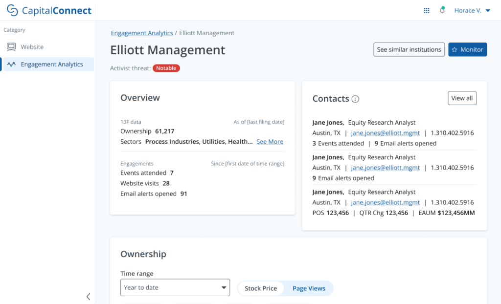 If bringing on a dedicated surveillance team is not possible, Q4’s Engagement Analytics activist notification tools can act as an initial, self-serve way to bring visibility into latent activist risk and identify if an activist of note has been popping up on your website or earnings events.