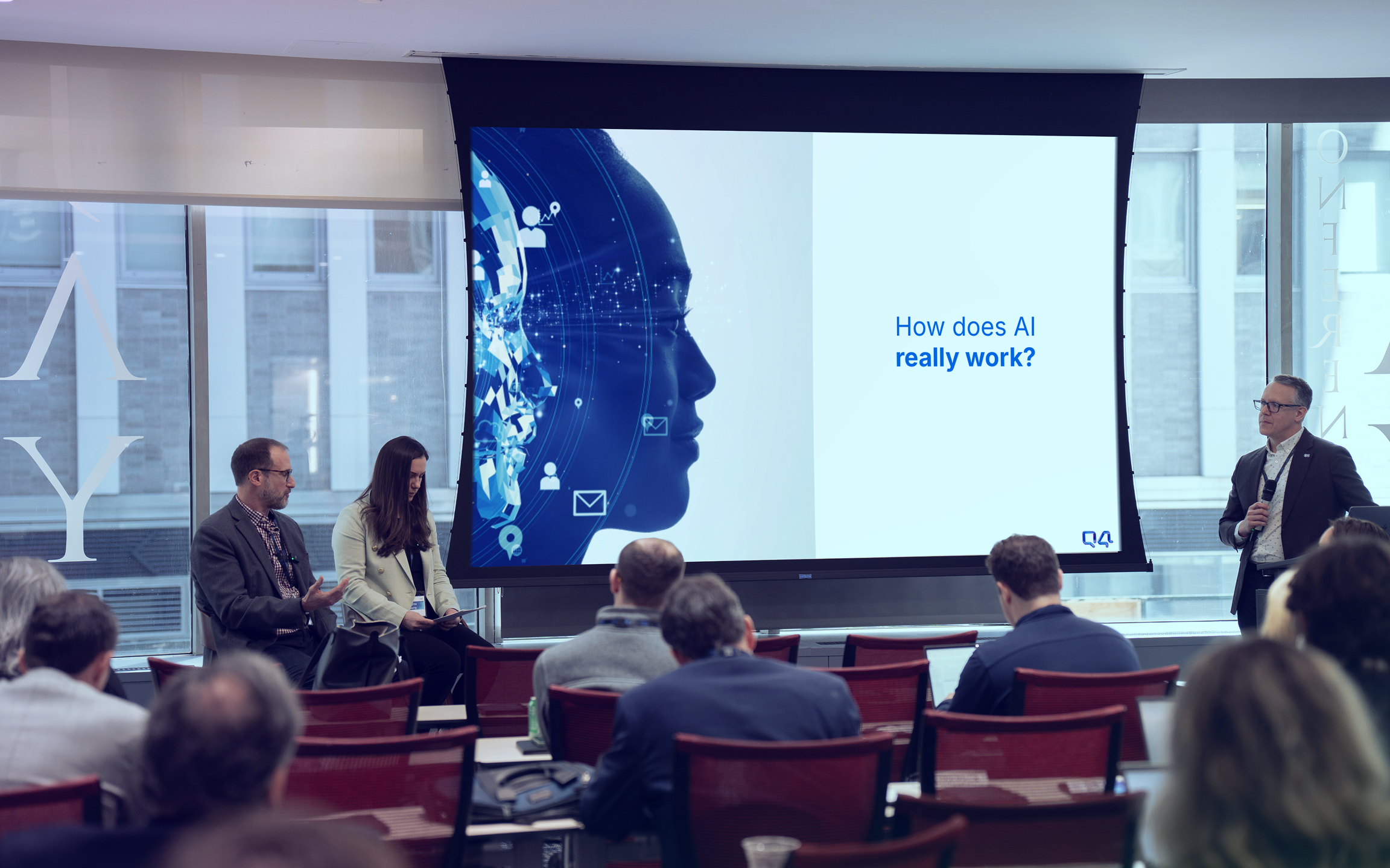 At Q4’s recent IR Masterclass: Leveraging AI & Tech for Success, IR professionals gathered at the Toronto office to explore how AI is reshaping capital markets communications. Led by Q4 Founder and CEO Darrell Heaps alongside guest speaker Alyssa Barry, President of Alliance Advisors IR, the session delivered live demonstrations and real-world insights with a clear message: purpose-built AI isn’t just changing how IR teams work. It’s elevating their strategic impact.
