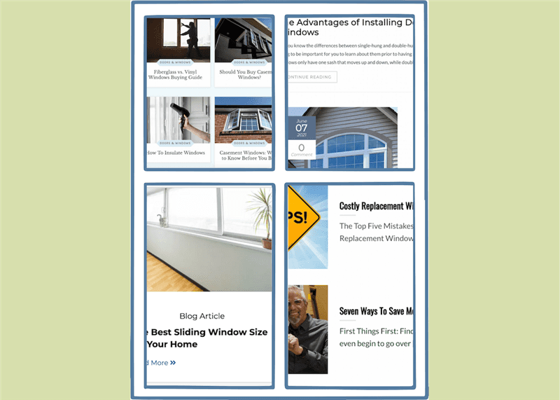 As far as window content goes, they have pages of replacement window-specific articles like fiberglass versus vinyl windows, how to insulate your windows, how to save money on replacement windows, and whether you should repair or replace your windows.