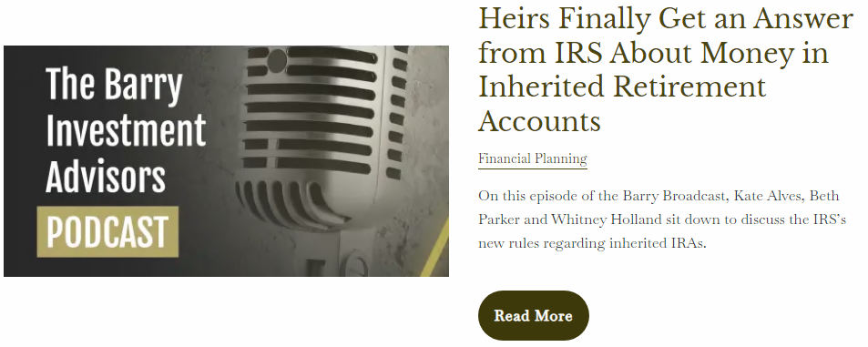 | Barry Investment Advisors 128 Union St.| Suite 507 | New Bedford, MA | 02740 W: 888.992.8601 | F: 508.992.4700 The information transmitted in this message, and any attachments to this message, is intended for the exclusive use of the addressee(s) and may contain information that is confidential or privileged. Any review, forwarding, printing, copying, retransmission, dissemination, or other use of this information by persons or entities other than the intended addressee(s) is prohibited. If you are not an intended addressee, please notify Barry Investment Advisors, LLC immediately - by replying to this message or by calling +888-992-8601- and delete all copies of this message and all information contained herein, including any attachments, without reading or disclosing them.