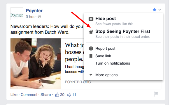 Evaluate post volume. Over the last year, many marketers have prioritized volume over quality to increase the chances that fans organically see content. With the new “see first” prioritization functionality fans have the opportunity to see every single piece of content before their live newsfeed. Though Facebook does truncate some of the content, a fan might see multiple posts from a single brand before they are able to view their newsfeed. If you’re posting too often, you may annoy some fans. Those annoyed fans can then opt-out of seeing your content with two clicks.