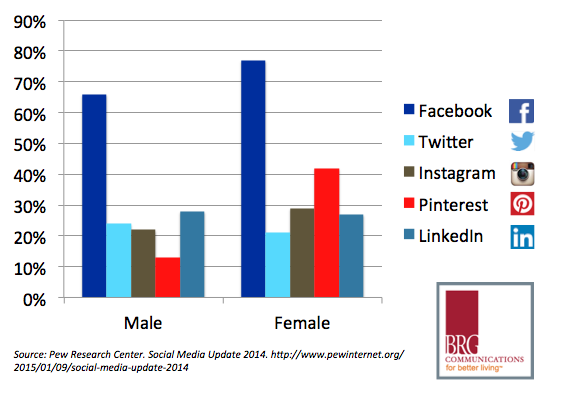 Women are a little more active in social media than men. Both men and women gravitate to Facebook, but women have a stronger preference for the photo-centric networks Pinterest and Instagram. Both men and women have almost equally adopted LinkedIn.