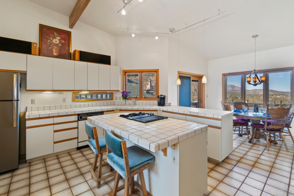 The ’90s leaned into beige and natural wood tones, with solid surface countertops gaining popularity. Kitchens were still semi-closed but often had a pass-through to the dining or family room for convenience.