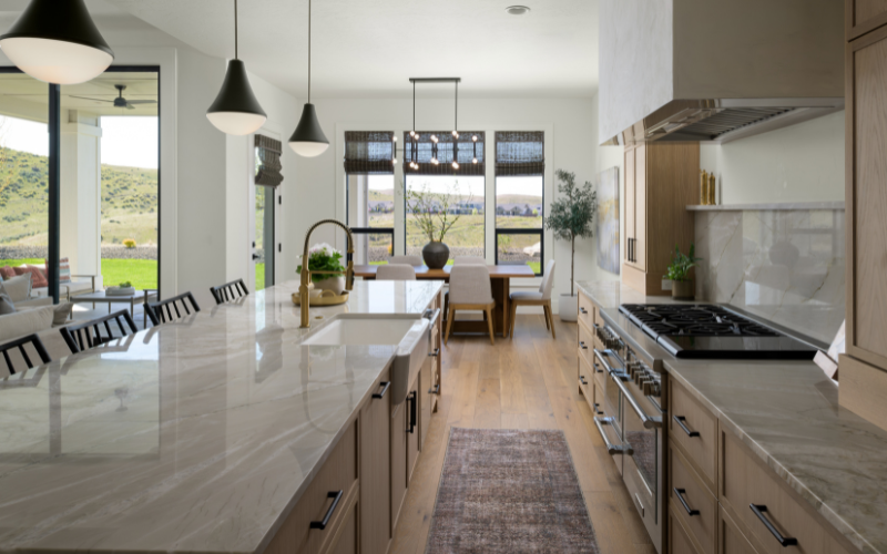 Functionality is also a priority. Expect walk-in pantries, hidden storage solutions, and appliance garages to keep kitchens looking sleek and clutter-free.