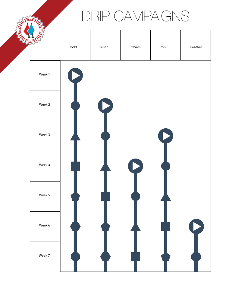 Inspired by transactional email, drip campaigns break apart the campaign sequence, and start each subscriber at email number 1. Instead of subscribers receiving the same email every week, they receive the same email chain, starting from week 1.