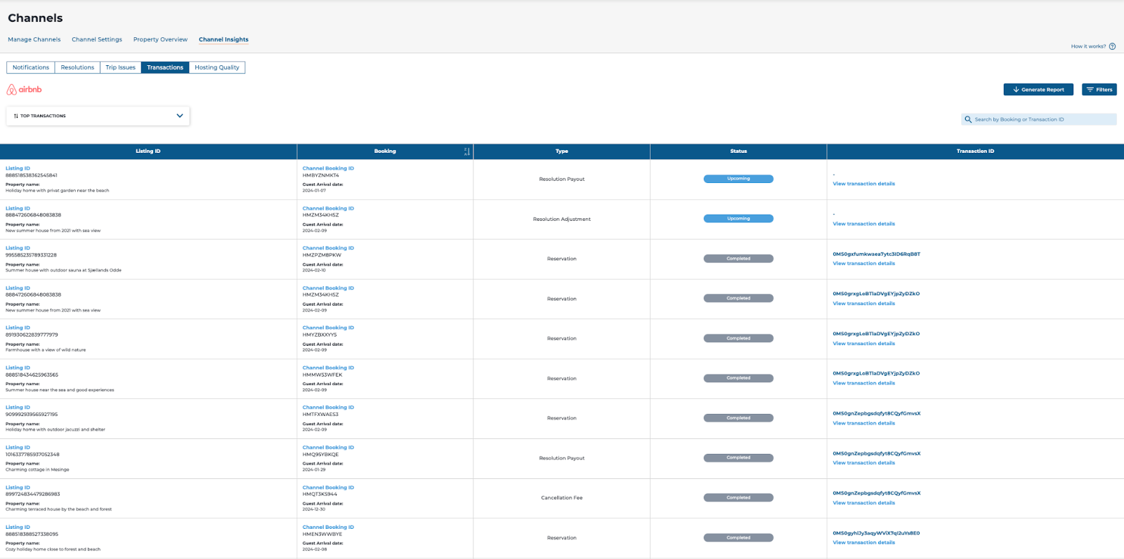 - Transactions – an overview of all Airbnb transactions/payouts for a particular host.