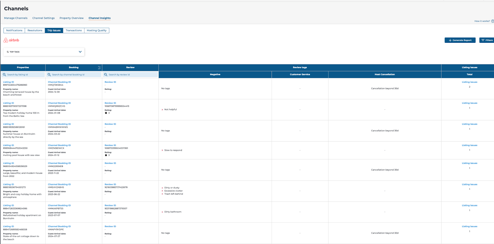 - Hosting Quality – an overview of the hosting quality status for each property.
