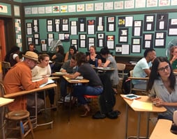 This year of inquiry began for me with a focus on peer talk routines. Our Mills Teacher Scholars (MTS) inquiry group at Encinal Jr. and Sr. High School was focused on supporting students in engaging more deeply in academic discourse, and I saw peer talk routines as an important vehicle for supporting my students – especially my English Language Learners – in developing a stronger understanding of the literacy content we were working with. I set about chunking my lessons to include times when my students would engage in an A/B partner talk routine (Partner A and B sharing ideas according to a specific protocol) that would be the focus of my inquiry, and collecting video data to see what happened within these conversations. I was hoping students would develop a facility with academic language in these discussions, and become aware of how these talk routines helped them learn content.