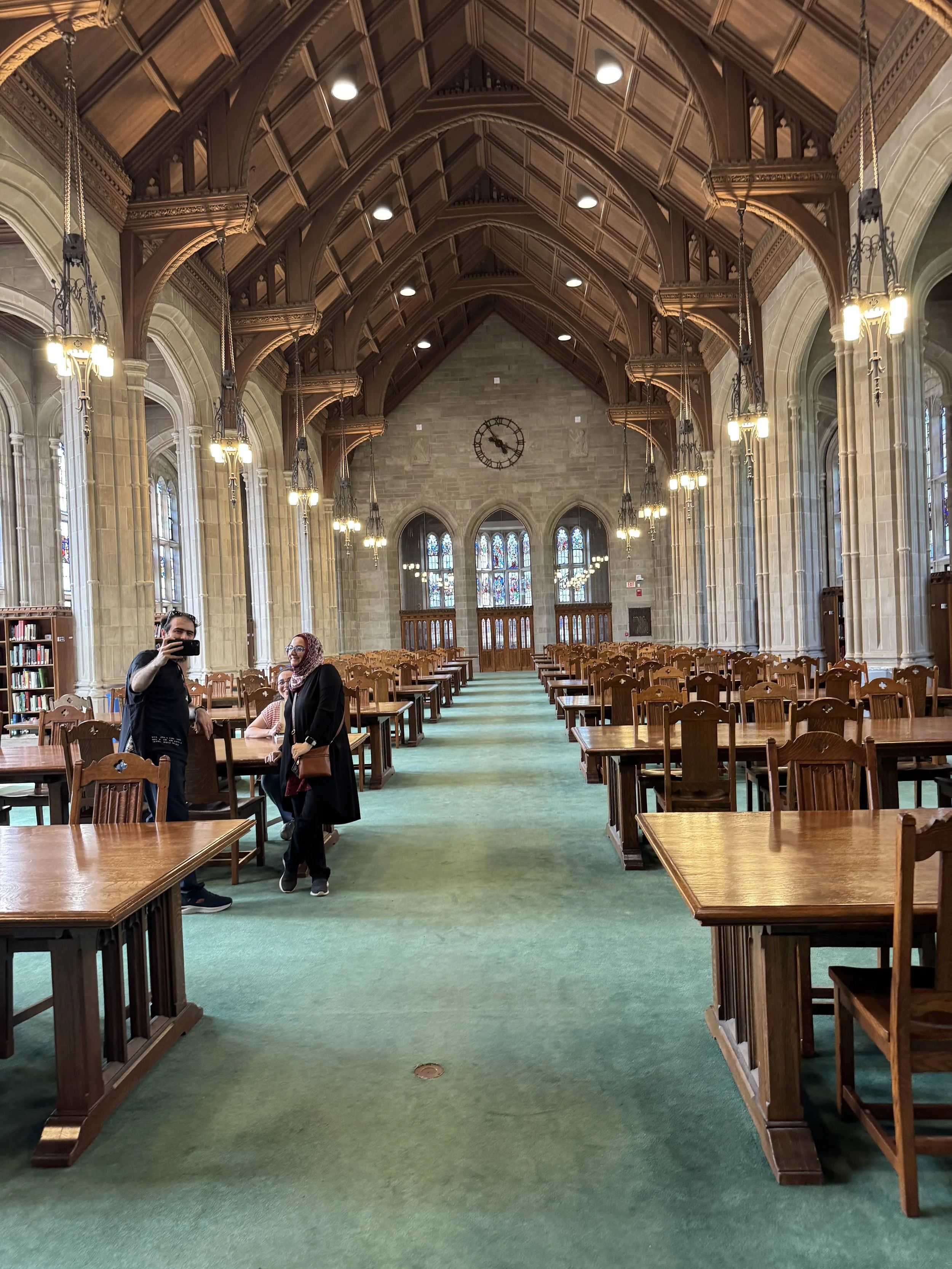 One of the most iconic spots on campus is Bapst Library (pictured at left and below). I stepped inside, and it was like I walked straight into Hogwarts. With its soaring ceilings, stained-glass windows, and long wooden desks, it’s a favorite quiet study spot for students.