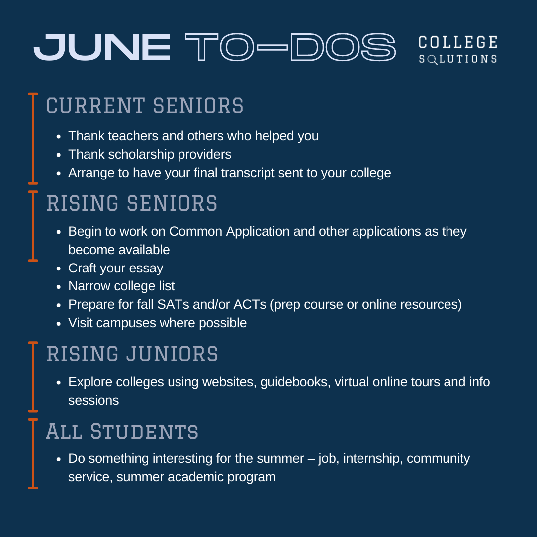 Do something interesting for the summer – job, internship, community service, summer academic program