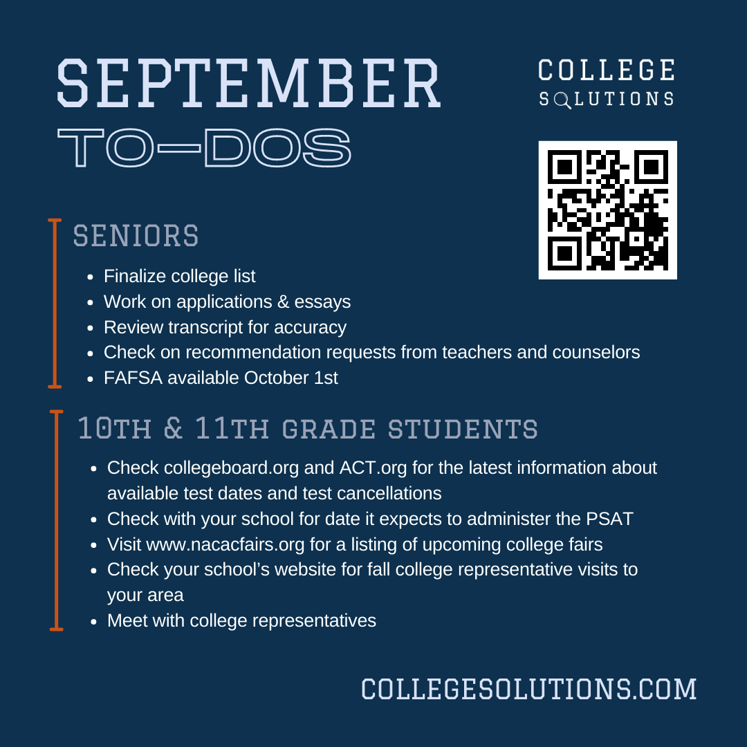 Prepare for fall SATs and/or ACTs (prep course or online resources)