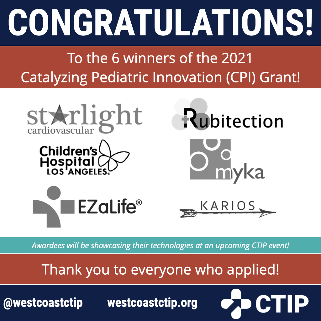 For more updates from CTIP about pediatric MedTech follow us @westcoastctip on Twitter, Facebook & Instagram, Consortium for Technology & Innovation in Pediatrics on LinkedIn and the web at www.westcoastctip.org