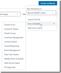 Then you can start building your first application with no code by creating a workbook and either start from scratch or use one of the predefined templates
