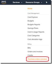 Well, now you can reconciliate these when using Amazon Web Services by accessing your AWS Billing and Cost Management portal (https://console.aws.amazon.com/billing/) and then access the new Purchase orders blade available under the Billing section