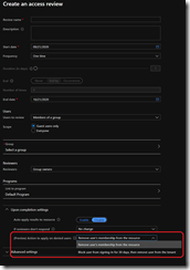 When you create a new access review, you will be able to define the actions under the Upon completion settings section