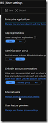 Then access the External Users option to enable the Enable guest self-service sign up via user flows