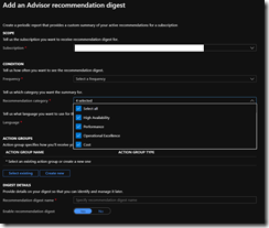 You can define the frequency, recommendation categories and how to receive these digests (SMS, email, push notification through the Azure mobile app or even webhook or ITSM, like ServiceNow).