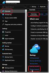 Then from the vault overview tab, you will see Backup Explorer available below the Overview tab