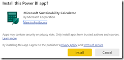 Then you will be asked to install the Microsoft Sustainability Calculator PowerBI dashboard