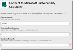 Once all the above has been completed you can now start using this dashboard to have a view and analysis of your carbon footprint in Azure by connecting to your Azure tenant; just replace the ‘sample Contoso’ details with your own Azure tenant details and the access key