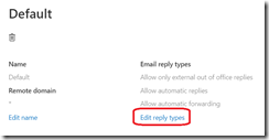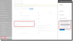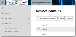 This option is a new capability to manage automatic forwarding. While the above solution (Outbound spam policy) is the best, it applies to all external domain. The remote domain configuration allows you to block automatic forwarding in general but allow it for some specific domains.