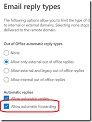 Well, here are the options available to Exchange Online administrator to manage – aka block – automatic forwarding to external email address.