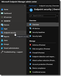 To start using these new security focused policies, logon to your Endpoint Configuration Manager portal (https://devicemanagement.microsoft.com/) and access the Endpoint Security blade
