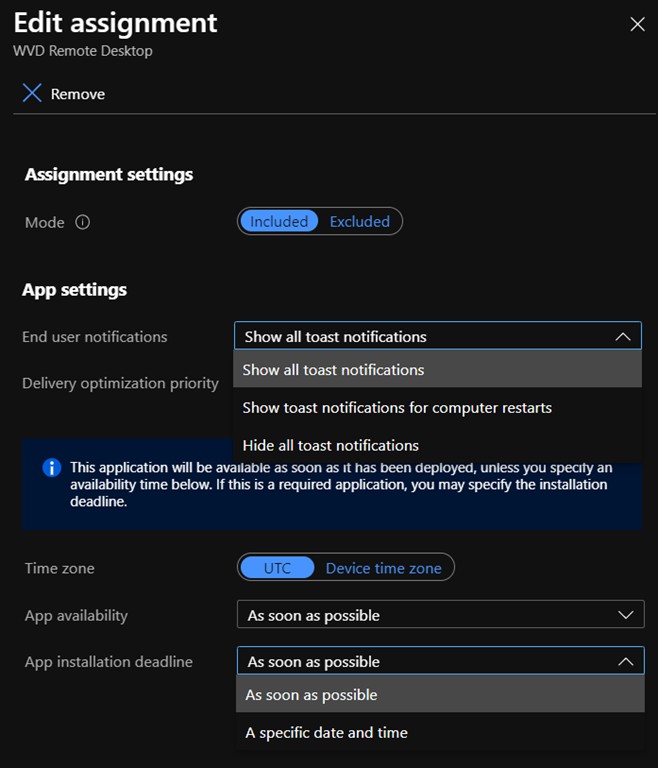 Well, you now have access to more options to manage application deployments – from managing user notifications to application availability and deployment – for the Windows app (known as Intune package too).