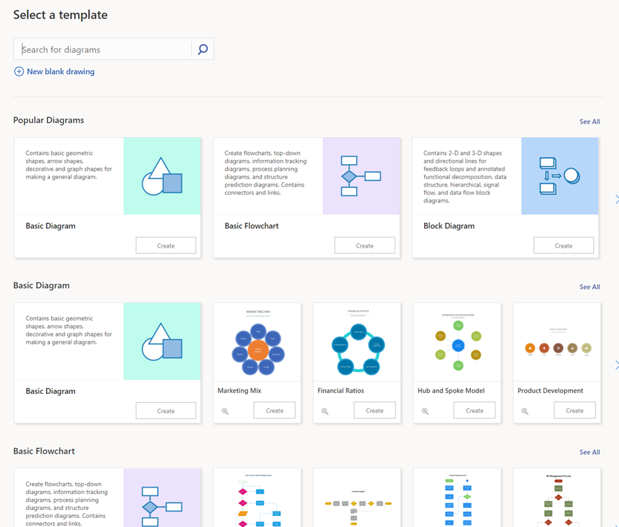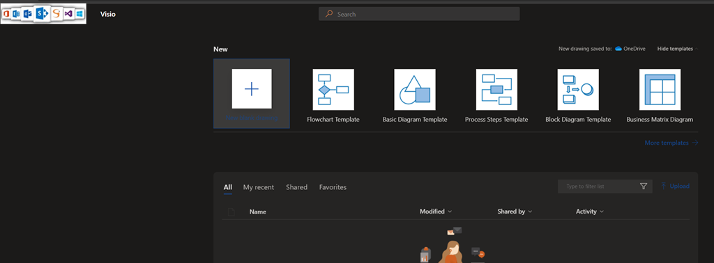 After signing on with your corporate account, you will be able to start creating and sharing Visio diagrams