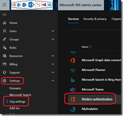 Office 365 – Manage modern authentication for Exchange Online from the administration portal
