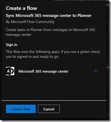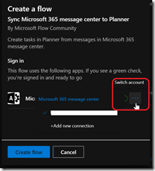 Sync Microsoft 365 message center to Planner)– you may have to sign in by clicking the + (plus) sign. If you see a green tick you are good to go for the creation of the automation