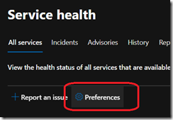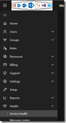 To start customizing your Service Health, connect to your Office 365 administration portal (https://admin.microsoft.com/) and go to the HealthService Health blade