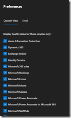 Office 365 – You can now hide/show services on the Service Health Dashboard