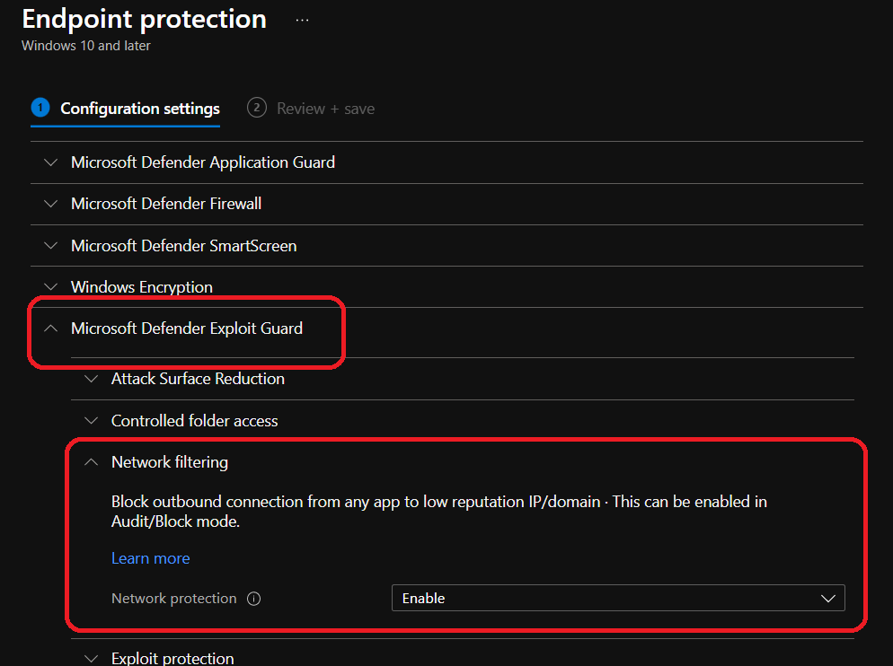 - Network filtering must be enabled (not audit mode) as well as Defender Smartscreen. You can enable it either by using PowerShell, Intune/Endpoint Configuration Manager or GPO