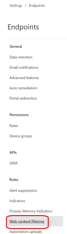 Then you connect to your Microsoft 365 Defender portal (https://security.microsoft.com/) and access the Settings\Endpoints\Web Content Filtering blade