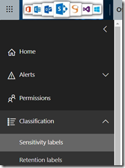 First, before gaining advantage of this integration you need to logon to your Office 365 Compliance portal (either from https://protection.office.com/ or https://compliance.microsoft.com/) to access the Sensitivity Labels configuration blade – this implies you already have migrated from Azure Information Protection/Right Management Services to unified labelling: