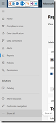 - From https://compliance.microsoft.com you need to Show all option and then open the Information Protection
