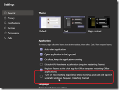 The first things will be to turn on the new experience and then restart your Windows Teams client.