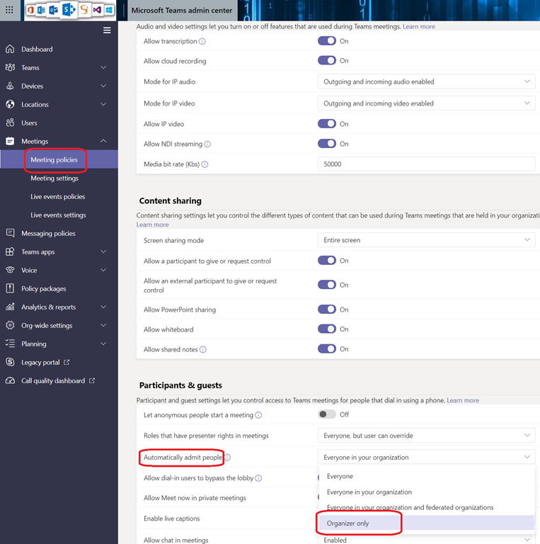 As you know, when setting up a Teams meeting you can define who can be automatically admitted to join the meeting, defined by your Teams administrator using Meeting policies.