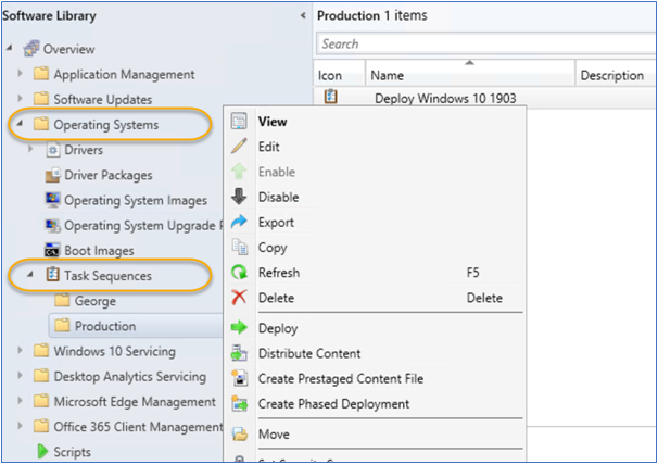 - Under the Software Library node, go to Operating Systems, then Task Sequences.