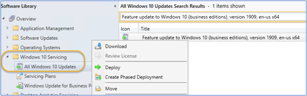 - Under the Software Library node, go to Windows 10 Servicing, then All Windows 10 Updates.