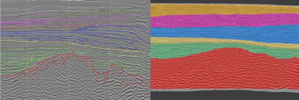 For example, when a geologist is creating a map of the geologic layers and faults under the Earth, they continually make educated guesses about what some of the map features will look like before they have gathered all the data. Not only does this give the geologist something early on paper (ok, on screen), but actually it provides a basis for hypothesis testing, and can help steer the succeeding data-gathering step. Think of this as akin to coming into a new town for the first time – even though you might never have been to that particular town before, all towns share certain traits and tend to have similarities which we can use to imagine the parts we haven’t yet seen. This kind of intuitive thinking and rule-of-thumb-based guessing, although critical for many sciences, has not been the realm of computers. Yet.