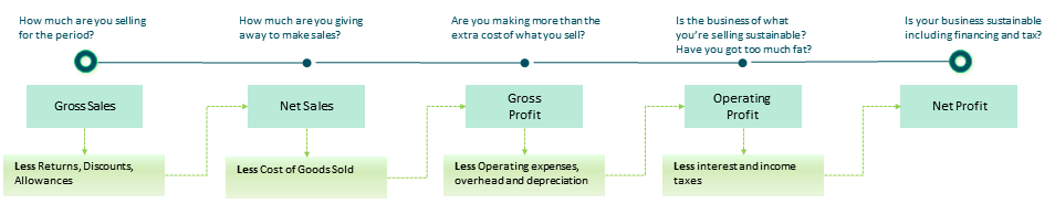 When you speak to us (or other accountants), you probably hear a lot about profits and margins. When you go to seminars or read about business, you probably get bombarded with different names for profits and margins. If you find all that hard to follow, this is a simple guide to profit terms, how they fit together, and how you can use them to run your business better.