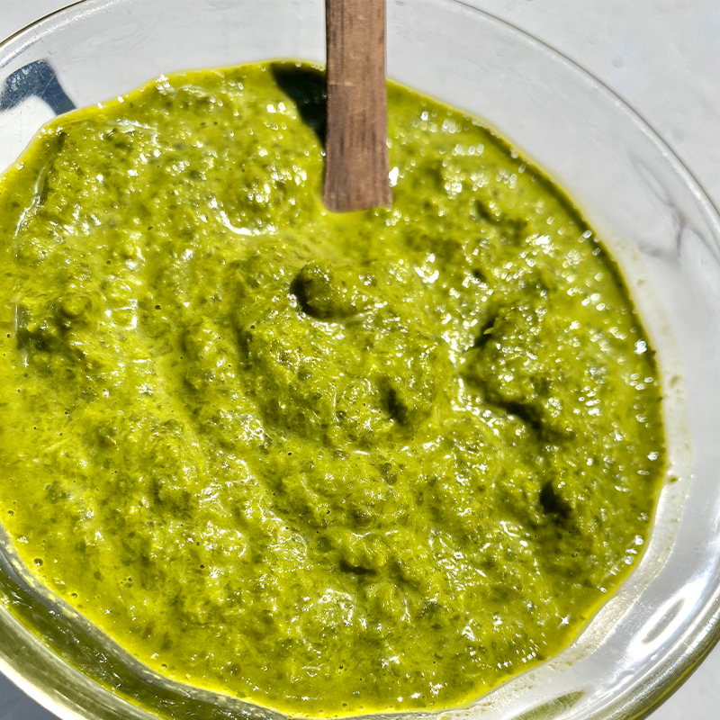 With these musings on time, I bring you the sauce I make almost weekly for my family in Spring time. I put this sauce on everything — eggs, steak, fish tacos, leftover grains, as a salad dressing, over roasted root veggies — be creative and go wild! Think outside the box as we are stuck inside one.