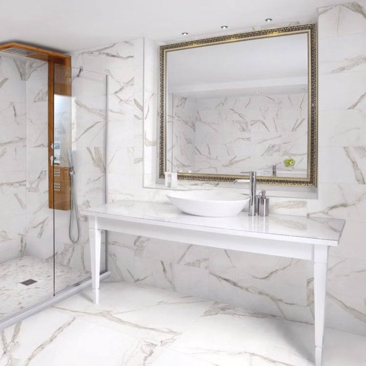 Large format tiles are gaining popularity for their ability to create a seamless, sleek look in any bathroom. These tiles, which are generally 24 inches or larger, reduce the number of grout lines, giving your bathroom a more modern and uncluttered appearance. The fewer the grout lines, the easier it is to clean and maintain, making large format tiles a practical choice as well.